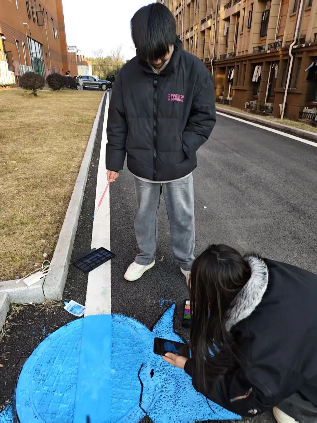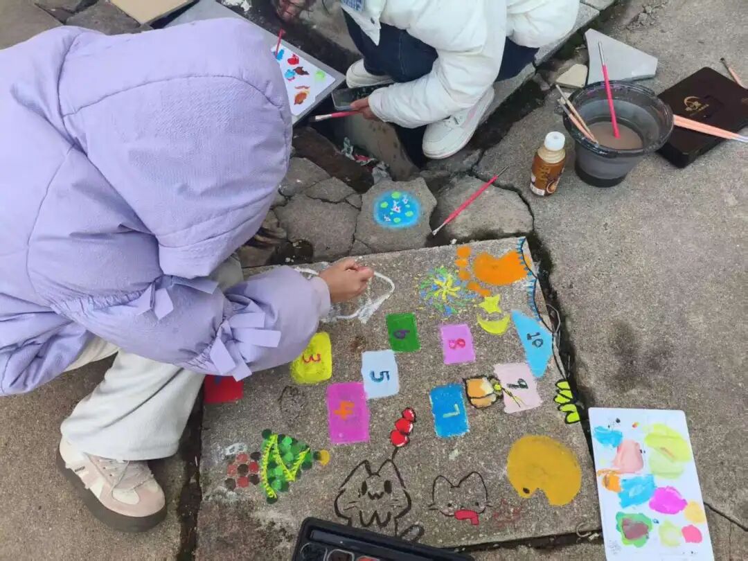 为深入推动课程思政改革创新,将价值引领融入专业教学全过程,12月25日,基础教育学院以色彩课程教学改革为依托,成功开展“行走的思政课”暨“爱我校园”主题实践活动。活动以“‘井’上添花绘家园,‘树’立新风践初心”为主题,组织学生在校园井盖、墙角等载体上进行艺术创作,探索“色彩教学+劳动实践+思政教育”的育人新模式。