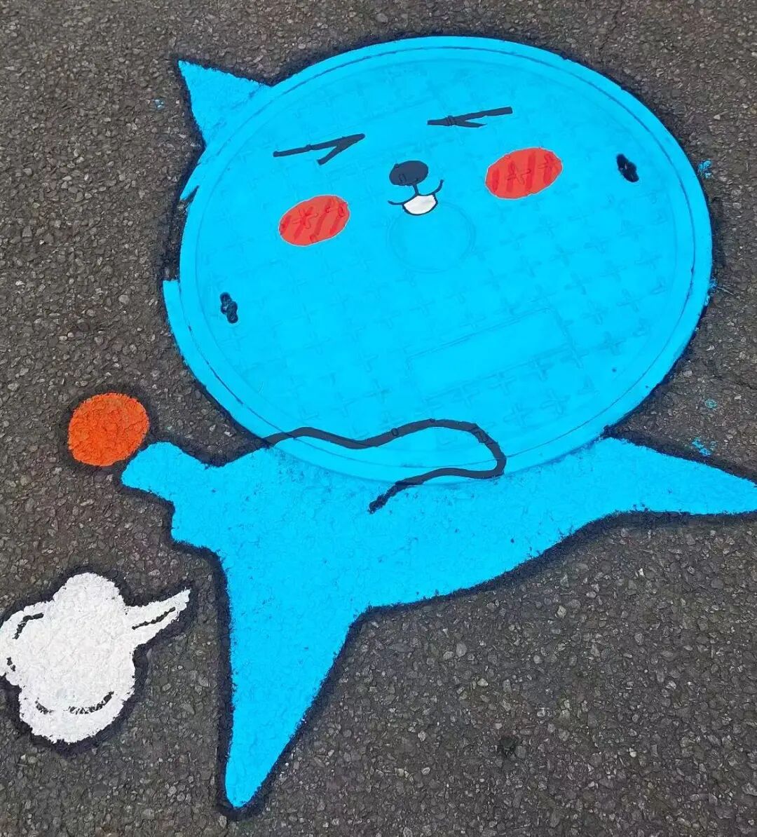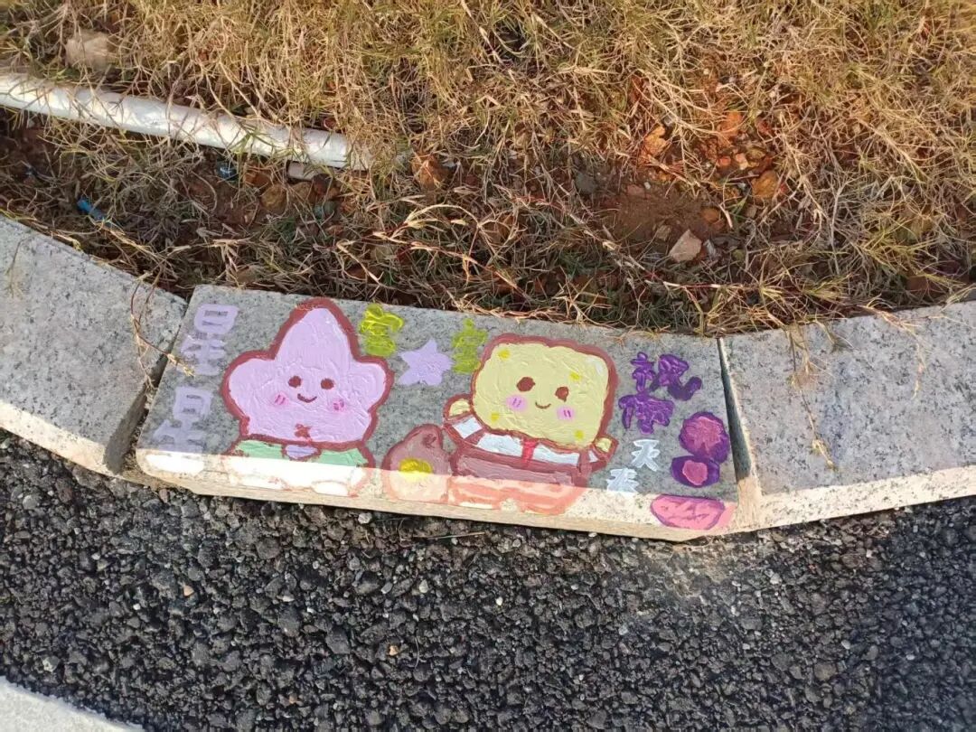 活动中,学生们运用课程所学的色彩理论、构图方法与表现技法,将动画形象、传统纹样、自然意象及时代符号融入创作。通过色彩的对比、调和与情感表达,原本朴素的井盖和角落焕发出艺术生机,呈现出“四季韵律”“绿色生态”“青春宣言”等多元主题,生动展现了色彩课程的实践成果与思政内涵。