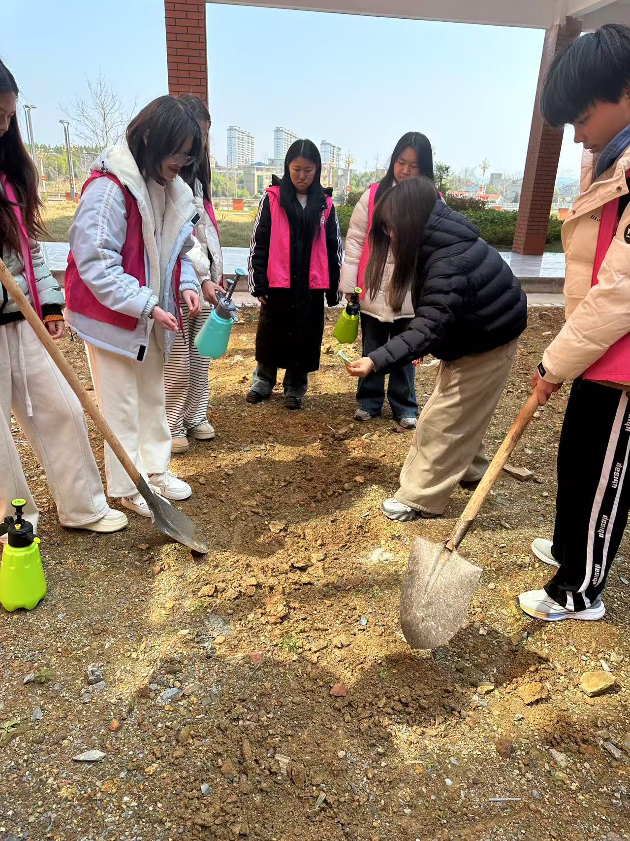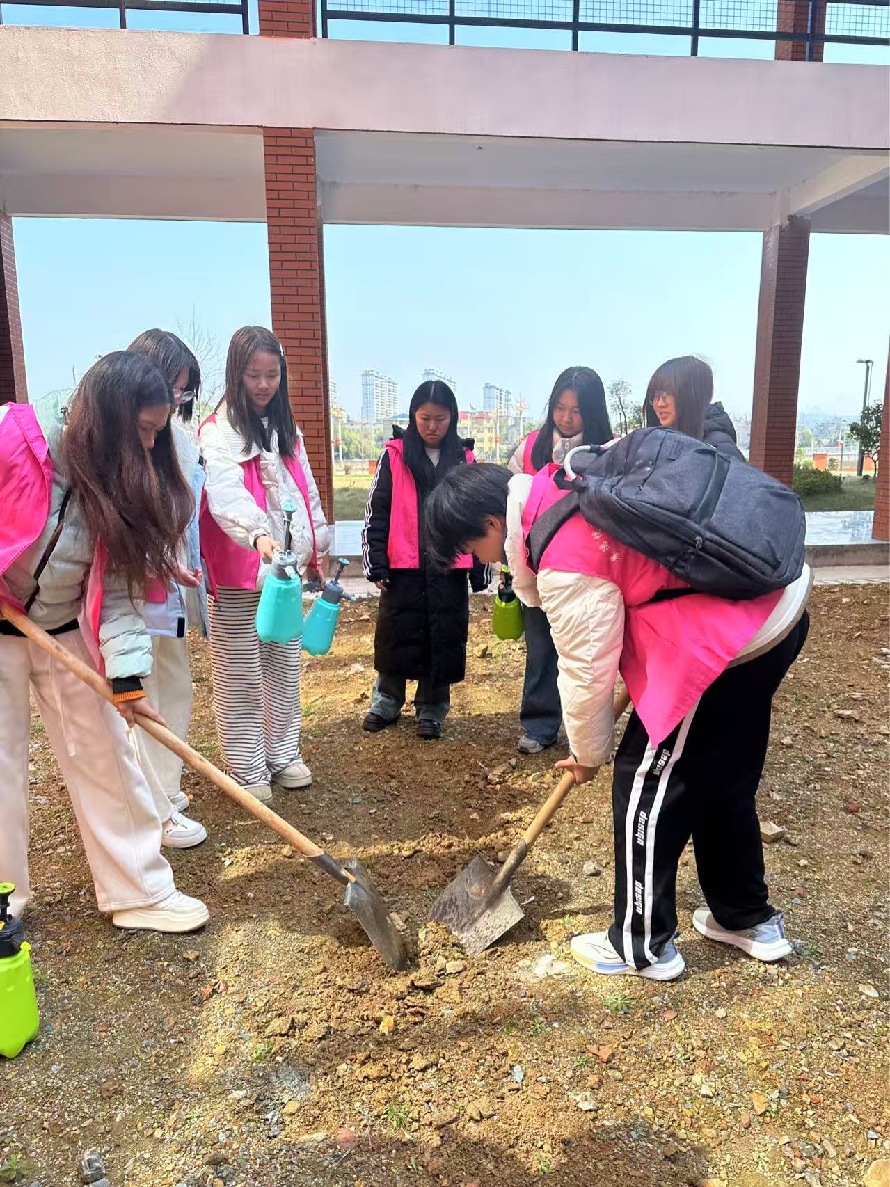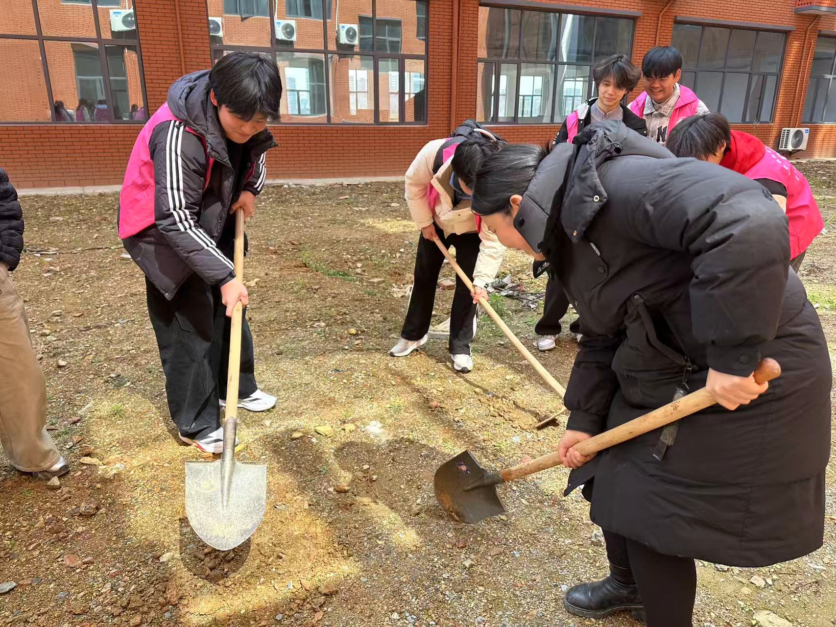 活动现场,志愿者们热情高涨、干劲十足。大家分工明确、配合默契,有条不紊地开展挖土、播种、浇水等工作,每一个步骤都一丝不苟,现场呈现出一派热火朝天的劳动景象。为初春增添了无限生机与活力。